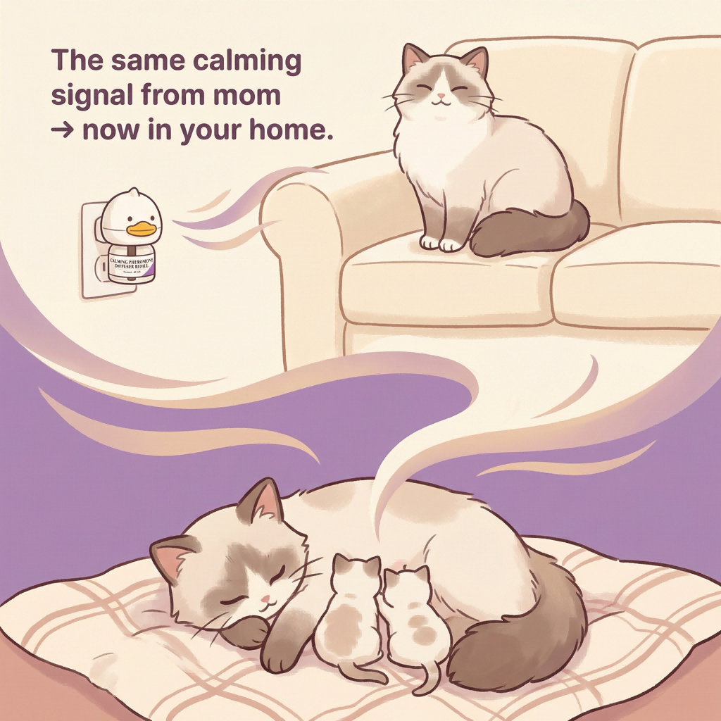 When cats feel safe, they release a natural signal that says: "This is home. We're family."